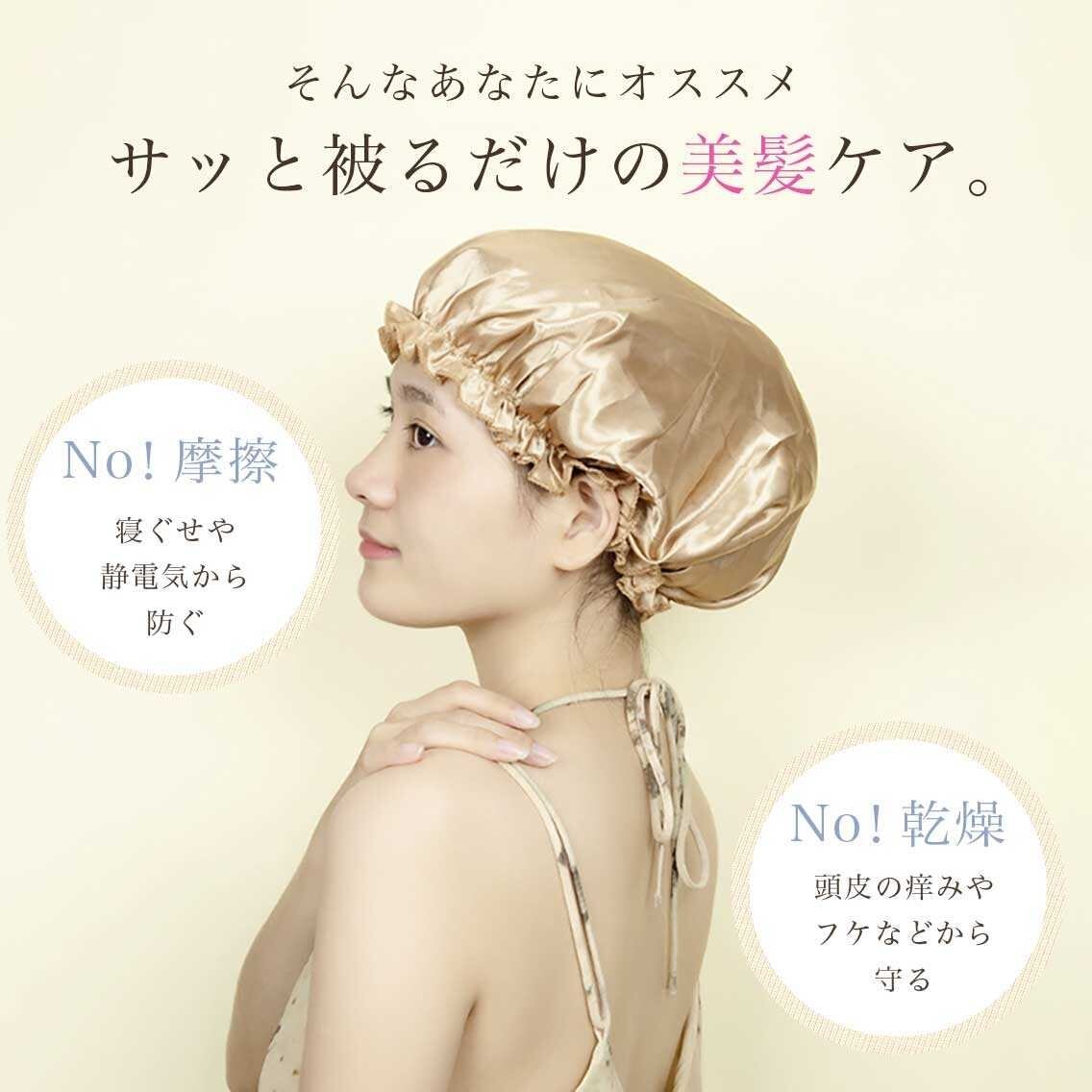 被ることによって、睡眠時の「摩擦」を防ぎ寝ぐせ・ほつれや乱れ・静電気が減少します。また、「乾燥」を防ぐぎ頭皮の痒みやフケの減少させます。髪のまとまりや指ざわりが良くなり、朝起きて満足、コテ・ヘアケアいらずでツヤサラ髪を実感できます。また、頭を冷やさないことで寒さ対策・風邪引き対策、保湿性ありなので白髪対策にもなります。