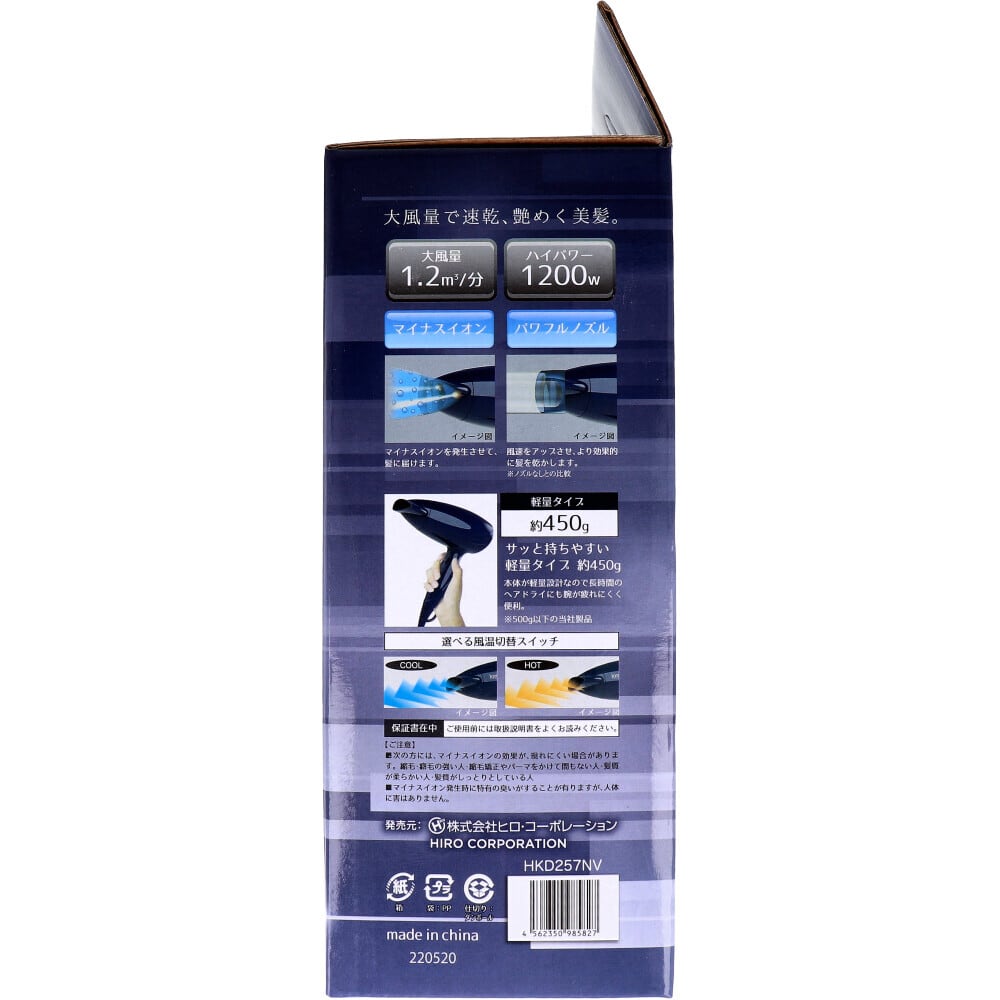 ionel マイナスイオンドライヤー ネイビー HKD257NV