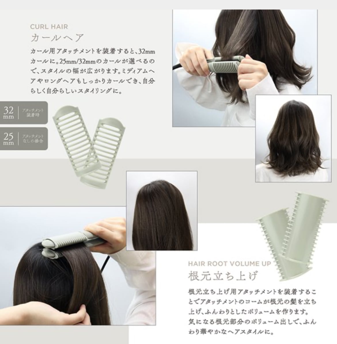 カール用アタッチメントを装着すると32mmカールに。